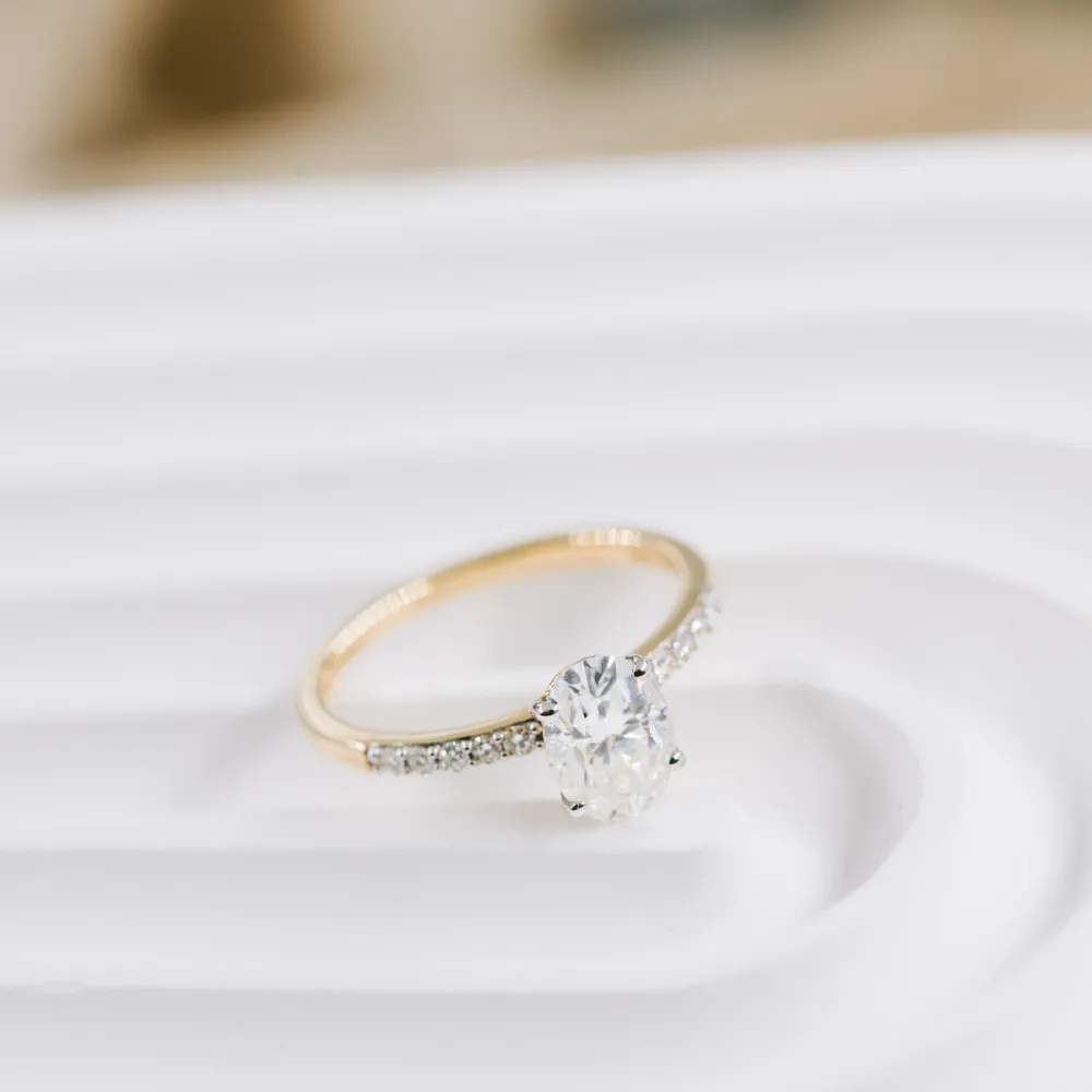Hvis du elsker de buede kantene og gnisten til en rund diamant, men ønsker deg noe mer unikt, er en ovalslipt sten noe for deg. Den ligner på en rund brilliant, men ovale stener virker ofte større enn en rund sten med samme karatvekt.