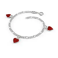 Dette nydelige armbåndet laget i 925 sølv og dekorert med rød glassemalje som gir hjertene et mykt, glitrende uttrykk. Armbåndet er både søtt og klassisk, og passer perfekt som det første smykket til et barn.