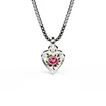 Dette nydelige smykket er laget i 925 sølv og dekorert med hvit glassemalje som gir smykket et mykt, glitrende uttrykk. Hjertet er både søtt og klassisk, og passer perfekt som det første smykket til et barn.
