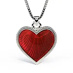 Dette nydelige smykket er laget i 925 sølv og dekorert med hvit glassemalje som gir smykket et mykt, glitrende uttrykk. Hjertet har et fint mønster i emaljen med en stjerne lengst opp. Sølvkanten har også ekstra nydelige detaljer i form av små sølvkuler. Med «Fader vår» gravert på baksiden er dette en populær gave til dåp og andre høytidelige anledninger.