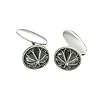 Mansjettknapper til bunad i 830 oksidert sølv med mørk bunn som danner en nydelig kontrast.