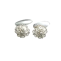 Mansjettknapper til bunad i 830 hvitt sølv med tradisjonell filigransdekor, utformet som en blomst,