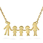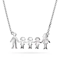 Flott familiesmykket i rhodinert 925 sølv med et anheng som symboliserer mor, far og tre døtre. Smykket er perfekt som gave til en mamma ved babyshower, fødegave, morsdag, bursdag eller som en hjertevarmende julegave.