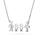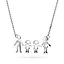 Flott familiesmykket i rhodinert 925 sølv med et anheng som symboliserer mor, far og to døtre. Smykket er perfekt som gave til en mamma ved babyshower, fødegave, morsdag, bursdag eller som en hjertevarmende julegave.