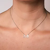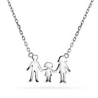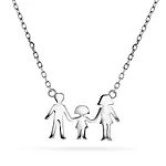 Flott familiesmykket i rhodinert 925 sølv med et anheng som symboliserer mor, far og datter. Smykket er perfekt som gave til en mamma ved babyshower, fødegave, morsdag, bursdag eller som en hjertevarmende julegave.