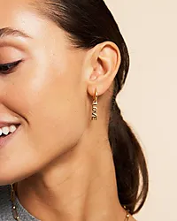 De herlige øreringene Love fra merke Edblad har en pent utskåret tekst som du vil elske å bruke jevnlig, og som også kan gis som gave til en du liker godt. henget på øreringene har teksten LOVE.