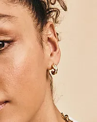 Den klassiske Andorra-serien fra merke Edblad har her fått et mykere formspråk med sine to avrundede skinner viklet rundt hverandre, en med klare steiner og en uten. Små elegante creoler som passer for alle, og som er en populær gave. Andorra creoler duo S vises her i forgylt rustfritt stål.