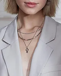 Husk at kjeden, med sin spesielle konstruksjon, kan gni litt mot sarte stoffer eller bli uklar av strikk, så vær forsiktig med hvilke plagg du har på halskjedet ditt.