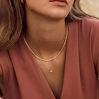Tinsel thin er et tynnere og elegant utformet kjede som gir et glitrende inntrykk. Mange små metalløkker er fint vevd sammen til et vakkert halskjede, her i blankt, 14K gullbelegg. Tinsel thin passer fint til layering for en mer personlig stil.
