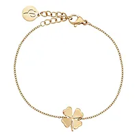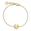 Lucky! Fra merke Edblad, lykken er en pen firkløver, som denne med sine lett buede blader og en liten kort stilk. På Lucky-armbåndet er firkløveret festet på et pent ankerkjede, og vises her i blankt 14K gullbelegg. Bruk det gjerne sammen med flere armbånd og andre ting fra Lucky-serien.