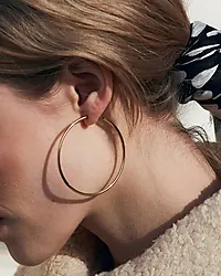 Hoops fra merke Edblad er en serie enkle, klassiske øreringer som kommer i tre størrelser og farger. Hoop small vises her i blankt 14K gullbelegg.