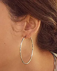 Hoops fra merke Edblad er en serie enkle, klassiske øreringer som kommer i tre størrelser og farger. Hoop small vises her i blankt rustfritt stål.