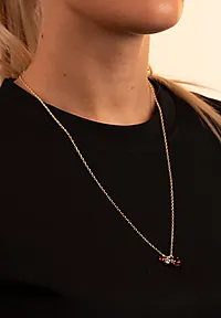 Smykke med vakker hvit og rosa krystaller, en glitrende detalj i en elegant form.