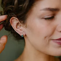 Disse vakre øredobbene er en del av den elegante Diamond Icons-serien vår, der klassisk design møter sofistikert glans. Øredobbene er laget i 585 gult gull og hver prydes av en glitrende diamant på 0,04 ct, som gir en subtil, men tydelig skinnende effekt. Kombinert med en dyp og nydelig hydrotermisk smaragd får smykket et tidløst og luksuriøst uttrykk.