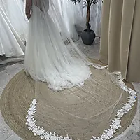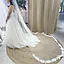 Sløret med vakker blondekant følger med og er sammen med kjolen blitt renset og klare for en ny brud!