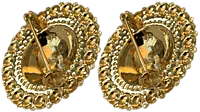Borenåler til bunad i 830 forgylt sølv med tradisjonell filigransmønster, perlekant og rød sten. På baksiden er det sikkerhetsnål til å feste de med. Disse blir levert som et par.