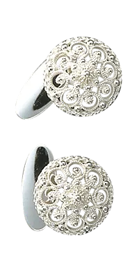 Mansjettknapper til bunad i 830 hvitt sølv med tradisjonell filigransdekor og delikat kruse i senter.