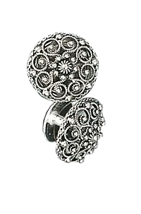 Vakre mansjettknapper i oksidert sølv med stolpe. Knappene er dekorert med filigran og kruse i midten. Disse mansjettknappene passer til Grafferbunaden og Gudbrandsdalen.