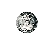 Bunadsknapp i oksidert sølv med bunn. Knappen er dekorert med tradisjonell 5-blads blomst. Denne knappene passer til bunadene: Gudbrandsdalen, Hallingdal, Sotra, Sunnmøre og Valdres.