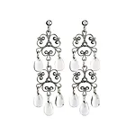 Bunadsøredobber i 830 oksidert sølv med filigransdekor, dobbelt heng og dryppløv. De er spesielt fine til bunader med oksidert sølv.