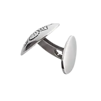 Mansjettknapper til bunad i 830 oksidert sølv med firkløver, selve symbolet for hell og lykke! Disse mansjettknappene har stivt mellomstykke.