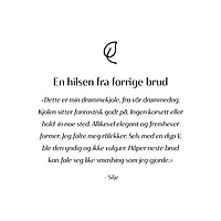 Kjolen er kjøpt på brudesalong og er blitt tilpasset hos skredder. Det er blitt påsydd ermer, tilpasset rygg og fått på hempe til slep. Kjolen er nå renset og klar for en ny brud.