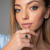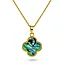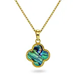 Smykke med kløver av abaloneskjell, kjent for sin utrolige styrke og perlemorsglans på innsiden, med farger i regnbuens spekter.