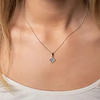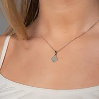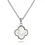 Kløver smykke i 925 rhodinert sølv med perlemor, en sten med skinnende og unik glans.