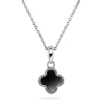 Kløver smykke i 925 rhodinert sølv med syntetisk sort agat er trendy og lekent smykke som setter preg på antrekket ditt!