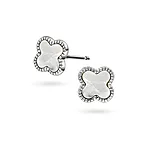 Kløver øredobber i 925 rhodinert sølv med perlemor, en sten med skinnende og unik glans.
