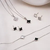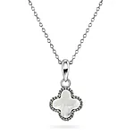 Kløver smykke i 925 rhodinert sølv med perlemor, en sten med skinnende og unik glans.