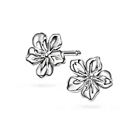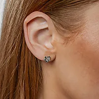 Øredobber med blomst i rhodinert sølv. En liten blomst med stor eleganse. Den passer perfekt alene for et rent og klassisk utseende, eller sammen med andre smykker i Blossom-serien.