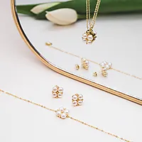 Kløver smykke med fire glansfulle ferskvannsperler - en i hvert blad. Perlene symboliserer lykke og skjønnhet, og passer perfekt som gave eller som et personlig smykke med mening.