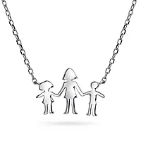 Flott familiesmykket i rhodinert 925 sølv med et anheng som symboliserer mor, datter og sønn. Smykket er perfekt som gave til en mamma ved babyshower, fødegave, morsdag, bursdag eller som en hjertevarmende julegave.