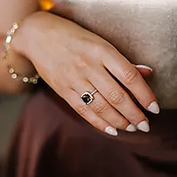Utforsk det sofistikerte og tidløse med Siena diamantring– et vakkert uttrykk fra The Diamond Icons. Denne ringen kombinerer varm glød fra 585 gult gull med den mystiske elegansen i røykkvarts, som akkompagneres av glitrende diamanter med totalt 0,25 ct. Resultatet er et smykke som fanger lyset på en måte som både er elegant og iøynefallende.