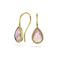 Disse elegante øredobbene i 585 gult gull kombinerer klassisk stil med et varmt og feminint uttrykk. Hver øredobb er pyntet med en vakker rosenkvarts, en edelsten kjent for sin myke, rosa nyanse og delikate glans. Det varme gullmetallet fremhever steinens naturlige farge, og gir smykket et tidløst og elegant preg.