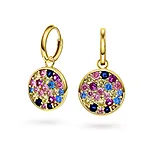 Shine øreringer med en dekorativ plate besatt med glitrende rosa og gul zirkonia. Festklare øredobber som fanger lyset og gir antrekket et glamorøst løft. Det er mulig å ta av anhenget og bruke øreringene alene!