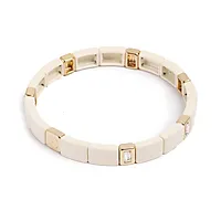 Enamel Tiles-armbånd i hvit kombinerer myke emaljetoner med matte detaljer for et delikat, nordisk uttrykk. Bruk dem alene for en ren, minimalistisk stil – eller miks flere for en mer bohemsk look.