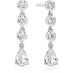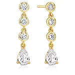 For den romantiske sjelen som verdsetter livets delikate øyeblikk. Disse hengende øredobbene danser med fire kantsatte zirkonia stener: tre glitrende steiner som faller i kaskade ned mot en lysende dråpe, alle omfavnet av mykt teksturerte, bølgende innfatninger.