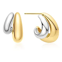 Disse huggies-øredobbene er både markante og sofistikerte, med to dristige ringer i et sammensmeltet kuppeldesign som følger ørets form på en autoritær måte.