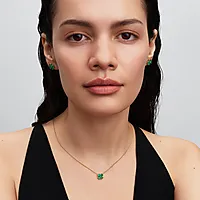 Den dype grønne fargen gir smykket et eksklusivt uttrykk, mens gulltonen tilfører varme og glød. Firkløveren er et tidløst symbol på lykke, håp og kjærlighet – et meningsfylt smykke du kan bære hver dag, eller gi i gave til noen du ønsker alt godt.