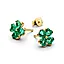 Føl deg heldig – og strålende elegant! Disse kløverformede øredobbene utført i 14k gullforgylling og dekorert med kongegrønne, hjerteformede syntetiske krystaller som sammen danner en vakker firkløver.