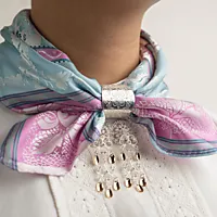 Skjerfring til silkjeskjerf i 830 hvitt sølv, laget for å holde skjerfet vakkert og trygt på plass. Denne ringen har gravert mønster med samme formspråk som annet bunadsølv slik at det skaper et gjennomført uttrykk.