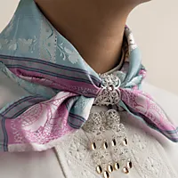 Skjerfring til silkjeskjerf i 830 hvitt sølv med lilla sten, laget for å holde skjerfet vakkert og trygt på plass. Denne ringen har tradisjonell filigrandekor og gir bunaden et gjennomført uttrykk.