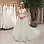 Nydelig brudekjole fra Pronovias med et romantisk og klassisk uttrykk. Kjolen kombinerer en detaljert blondeoverdel med et lett og luftig tyllskjørt som gir en vakker A-linje. Overdelen har en elegant dyp V-utringning med delikate blondestropper og fine blondedetaljer som fremhever midjen på en flatterende måte. Blondeapplikasjonene går mykt ned i skjørtet og gir en sømløs overgang til det fyldige tyllskjørtet. Baksiden har en vakker åpen rygg og en rad knapper nedover ryggen, som gir et klassisk og romantisk preg. Kjolen avsluttes med et elegant slep som faller lett bak.
