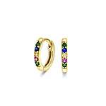 Øreringene består av rosa, gul, blå og grønn zirkonia.