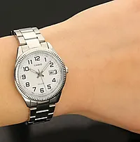 Glass Mineral Urverk Kvarts (batteridrevet) Farge på skive Hvit Kassens bredde i mm 31 Materiale på klokke Krom Rem Stål Display/funksjonalitet Analog Vanntetthet 4 Leverandørens varenummer LTP-1302PD-7BVEG EAN 4549526340963