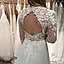 Kjolen er kjøpt hos Brudehuset i bergen, og lagt opp i lengden og ermene av skredder. På den opprinnelige kjolen var det puffskuldre som ble fjernet og ekstra blader ble flyttet ned på ermet. Selger er usikker på hva størrelsen ble etter modifikasjoner, men opprinnelig størrelse er: UK 14.