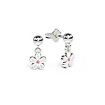 Disse nydelige øredobbene er laget i 925 sølv og dekorert med hvit glassemalje som gir blomstene et mykt, glitrende uttrykk. Øredobbene er både søte og klassiske, og passer perfekt som det første smykket til et barn.