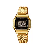 LA680WEGA-1ER er en moderne retrofavoritt med et slankt og elegant design som passer perfekt til hverdagsbruk. Den klassiske rektangulære kassen, kombinert med en tidløs gullfarget stållenke og et mørkt digitalt display, gir klokken et stilrent og minimalistisk uttrykk.